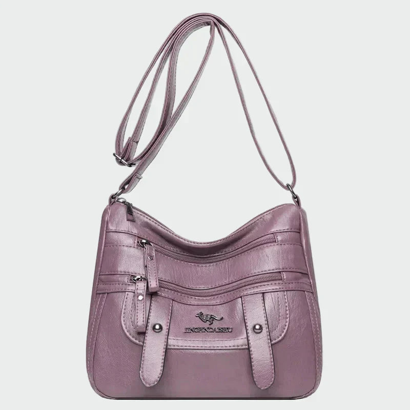Praktikus crossbody táska meleg barna árnyalatban, puha textúrával és funkcionális designnal. Több külső cipzáras zsebbel és fedéllel rendelkezik, amelyek kényelmet biztosítanak a rendszerezéshez és a biztonságos tároláshoz. A állítható vállpánt könnyű és kényelmes viselést biztosít, míg az elegáns dizájn tökéletes választás a mindennapi informális használatra.